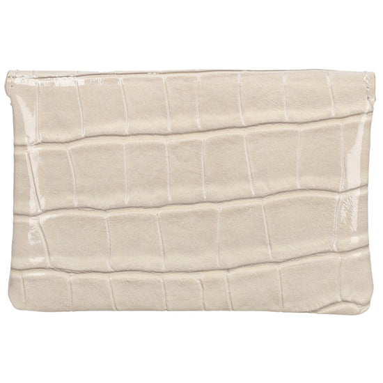 Beige Lackleder Geldbörse 11x8cm mit Krokoprägung – stilvoll & kompakt