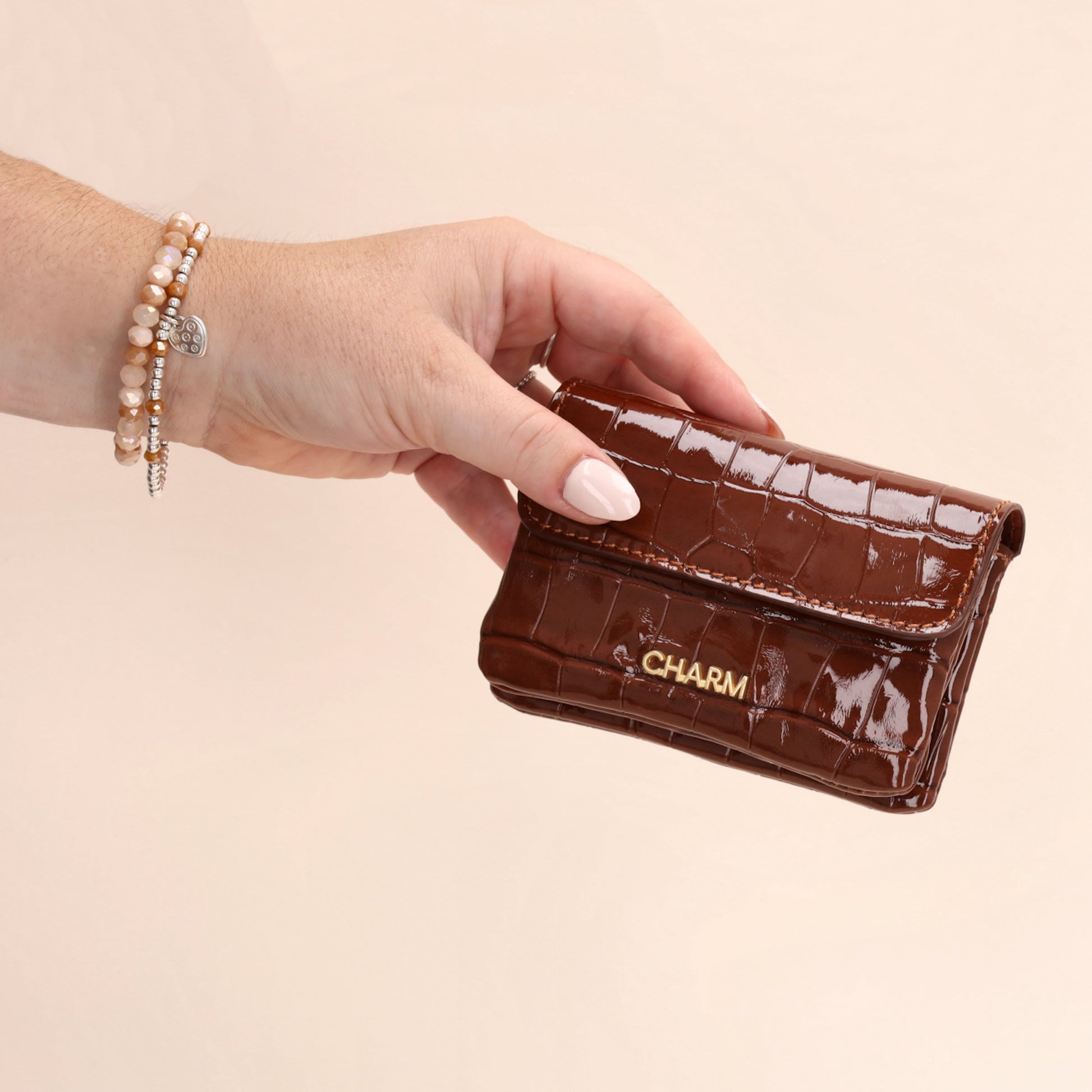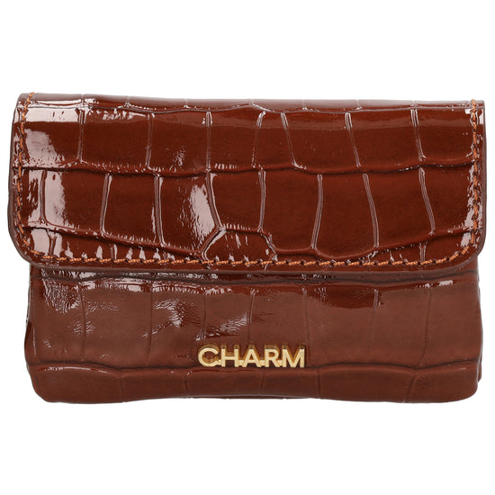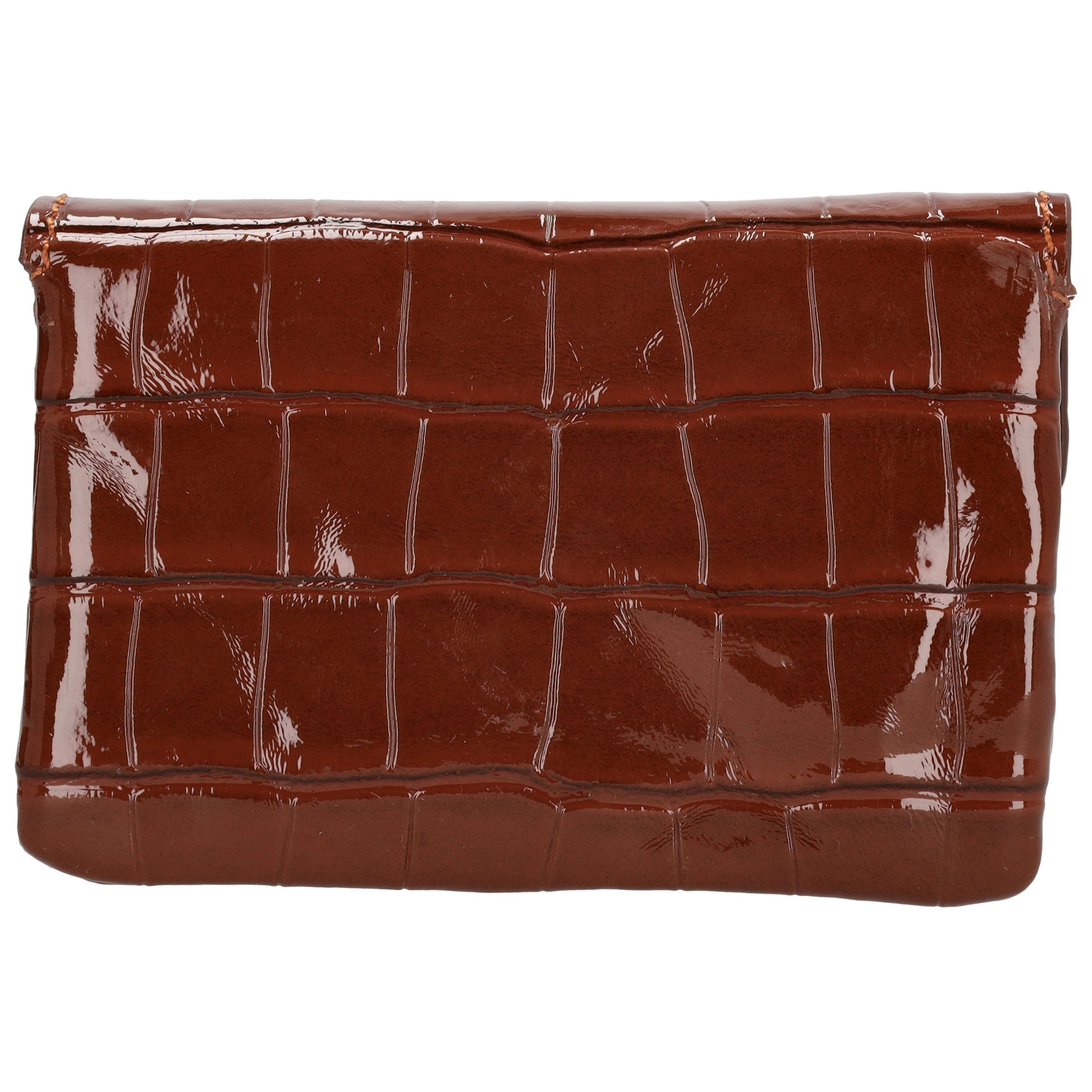 Braune Lackleder Geldbörse 11x8cm mit Krokoprägung – edel & praktisch