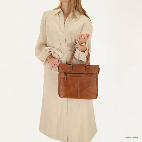 Diese hochwertige braune Ledertasche vereint zeitlose Eleganz mit funktionalem Design. Das fein genarbte Echtleder verleiht der Tasche einen warmen, klassischen Charakter und macht sie zum idealen Begleiter für Business und Alltag. Der stabile Kurzgriff sorgt für stilvolles Tragen in der Hand, während der zusätzliche Umhängeriemen flexible Trageoptionen ermöglicht.