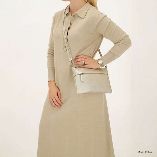Diese stilvolle Tasche in edlem Hellgold ist dein eleganter Begleiter für jeden Tag oder den besonderen Anlass. Aus hochwertigem Kunstleder gefertigt und mit silberfarbenen Details veredelt, vereint sie zeitlosen Stil mit praktischer Funktionalität.