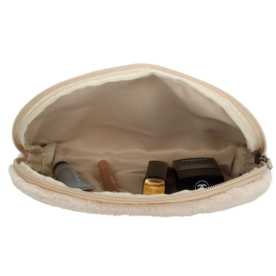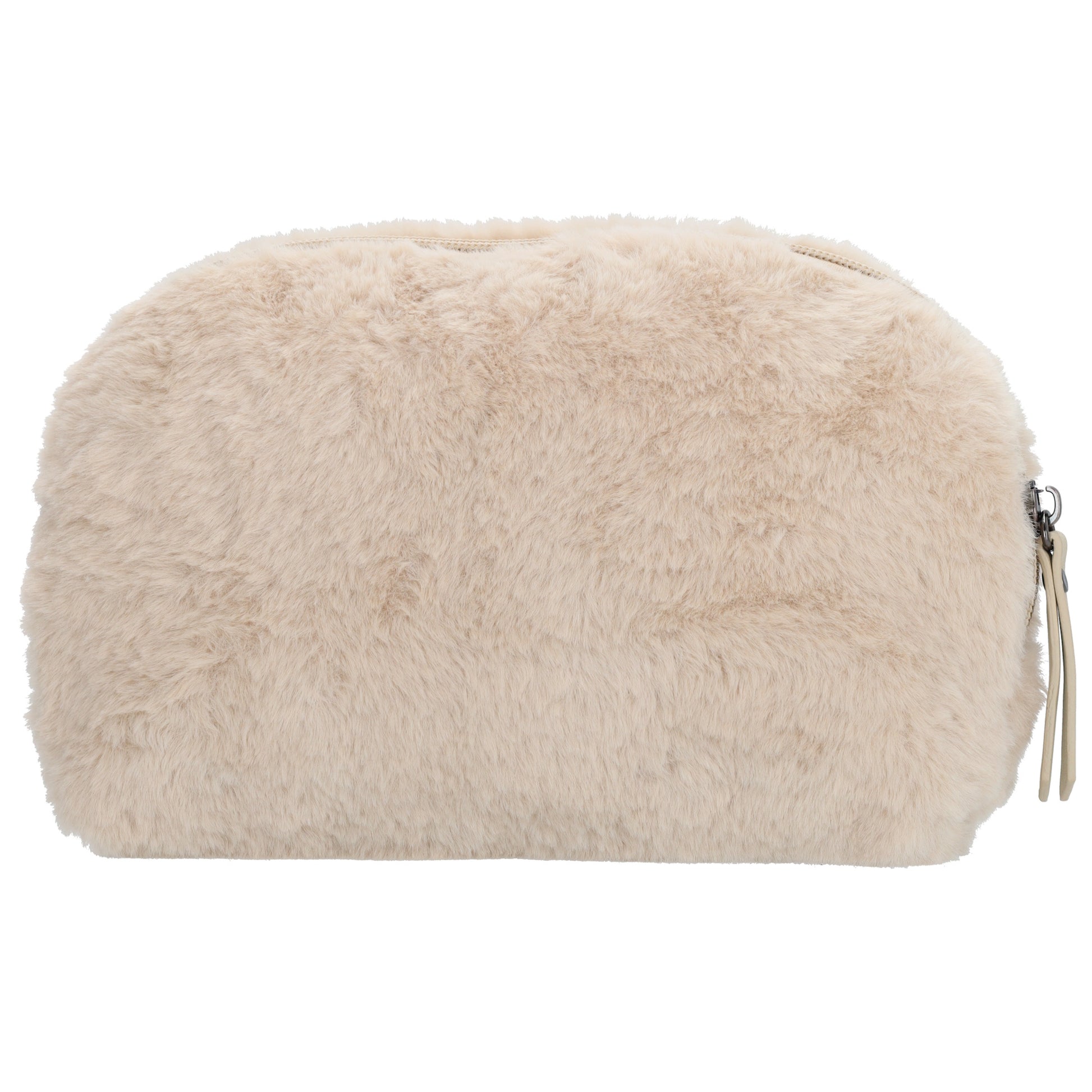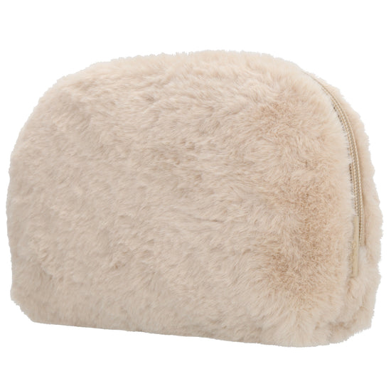 Cremefarbener Kosmetikbeutel 23x16,5cm aus weichem Kunstfell – kompakt & praktisch