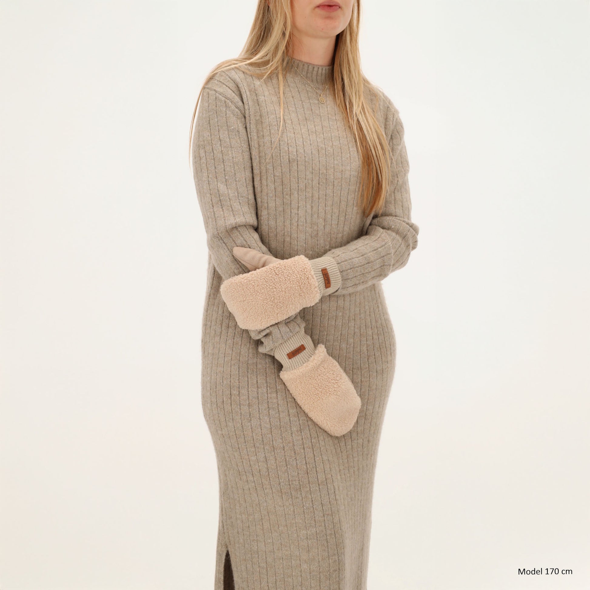 Fäustlinge Beige in Wildlederimitat und flauschigem Innenfutter