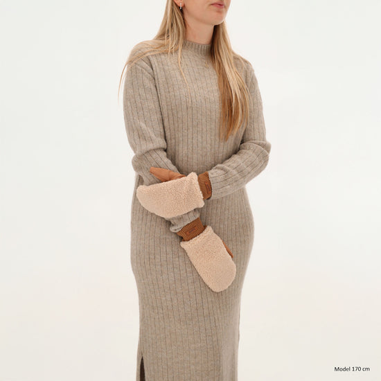 Fäustlinge Cognac in Wildlederimitat und flauschigem Innenfutter