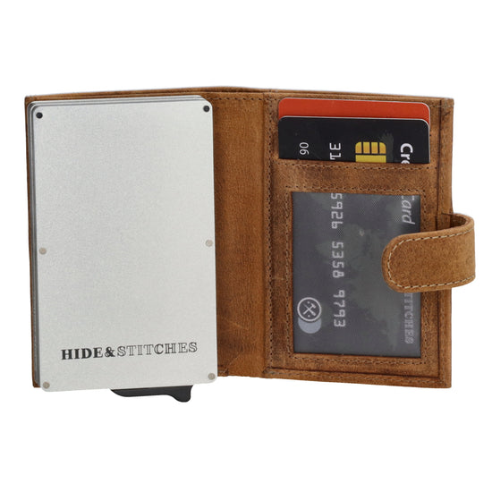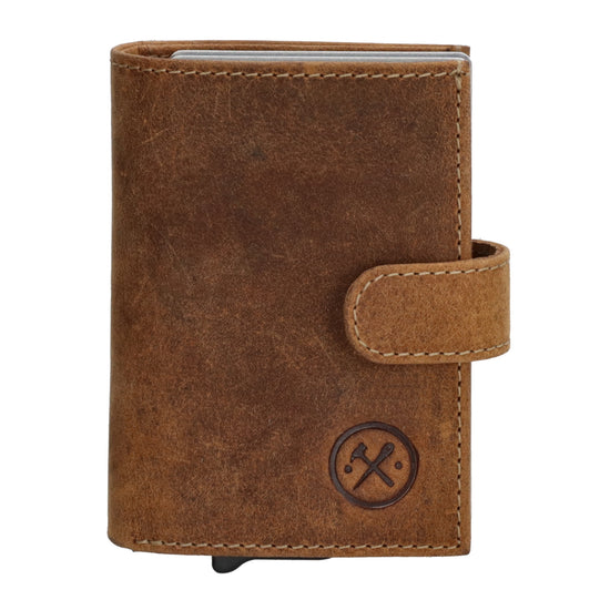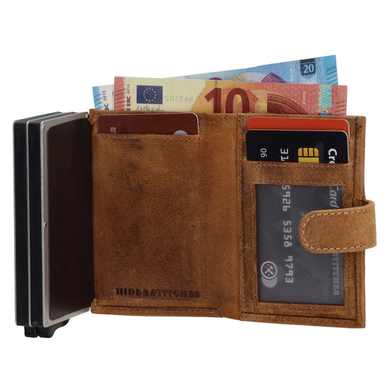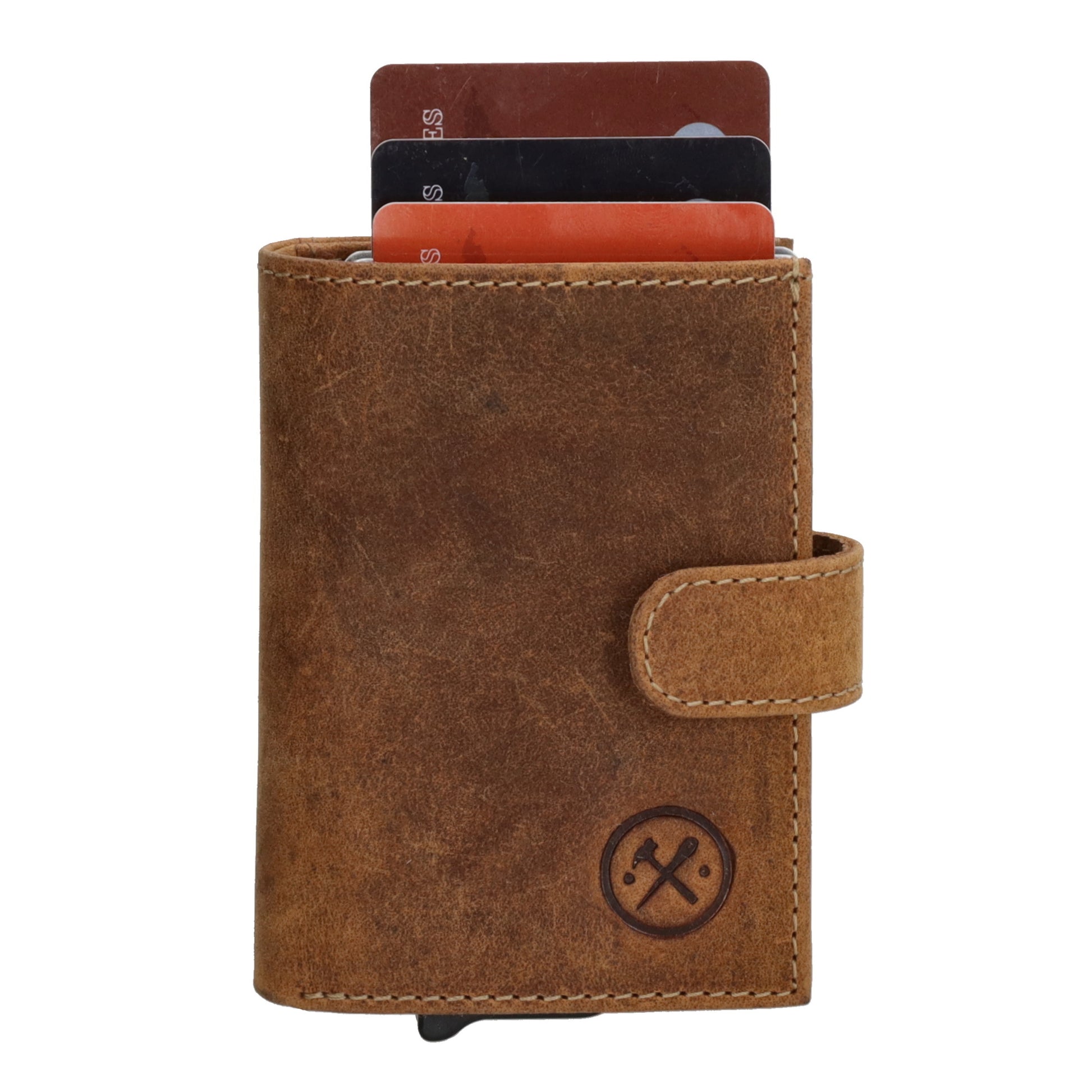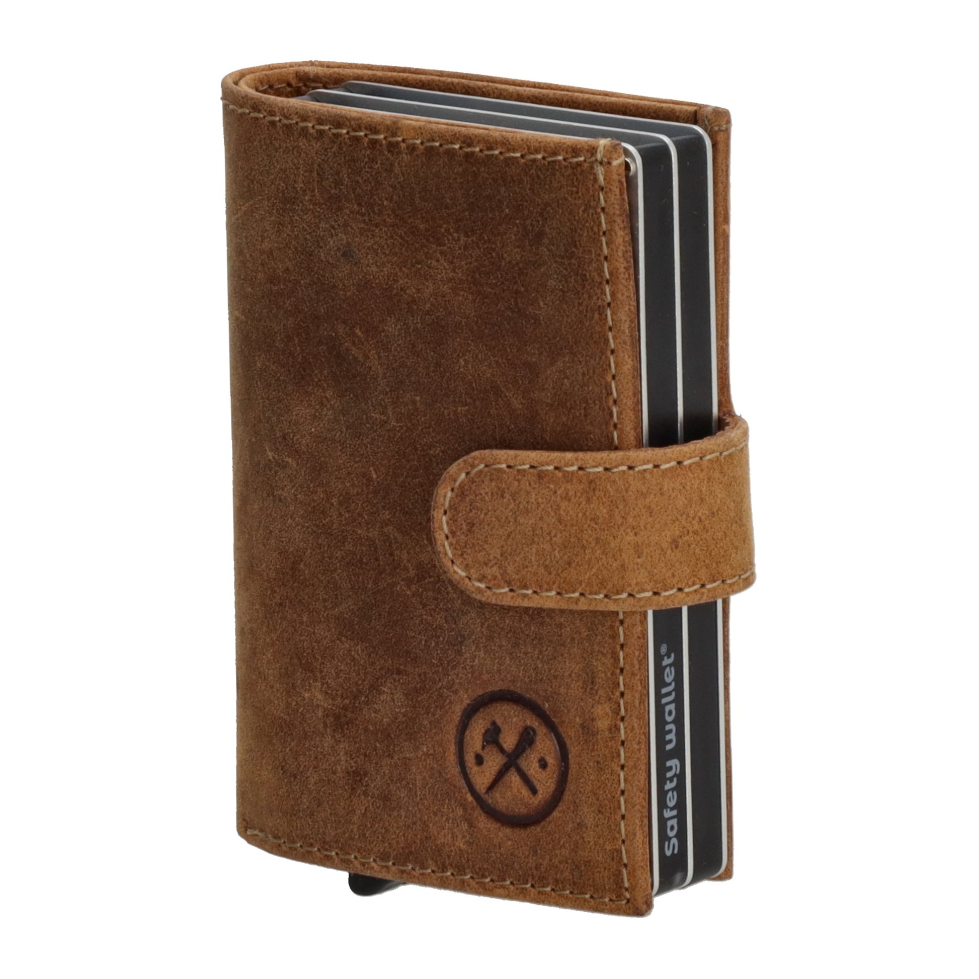 Kompakte Safety Wallet 8,3x10,5cm aus braunem Leder mit Karten- & Münzfach