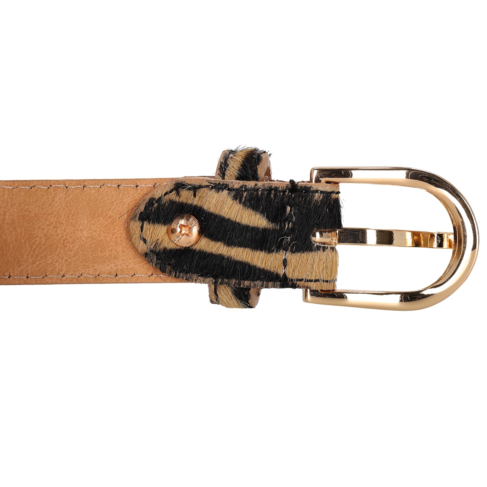Ledergürtel 25mm in Zebra|Braun mit Dornschließe in Gold