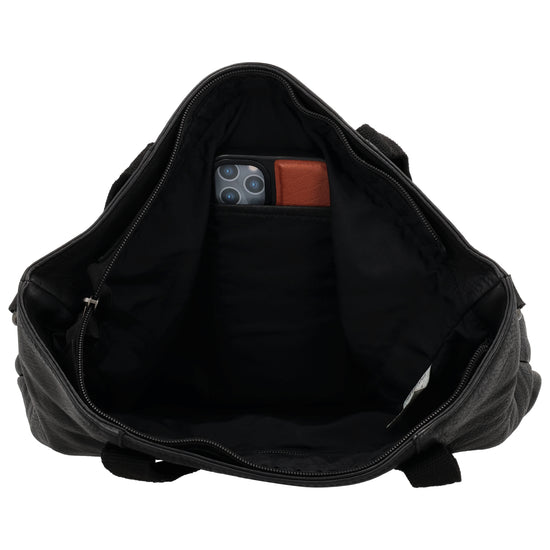 Ledershopper Schwarz 39x37cm – Große Damen Tasche aus Vollrindleder