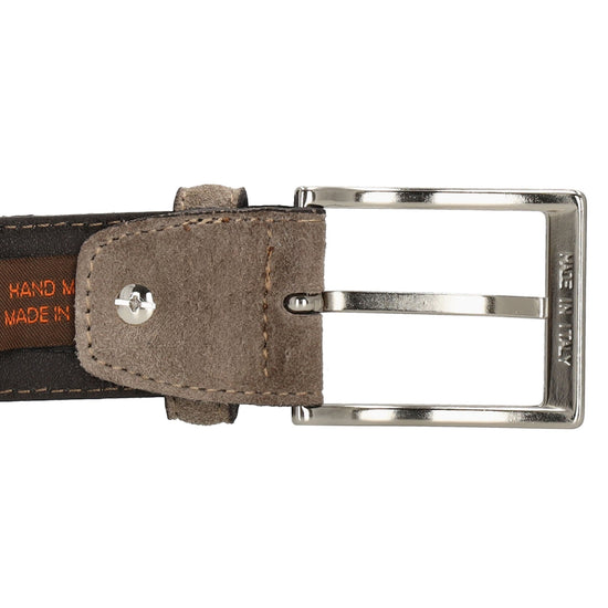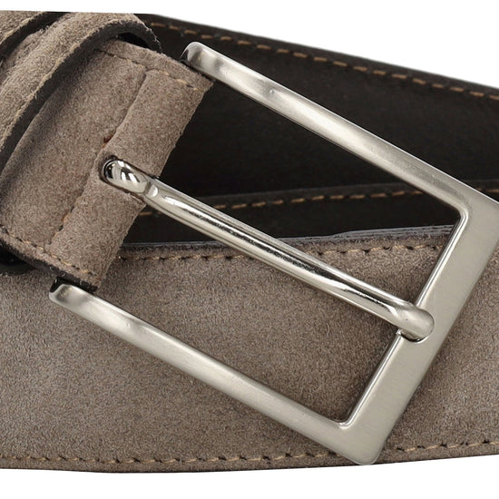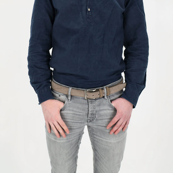 Der taupefarbene Veloursledergürtel überzeugt durch seine moderne, neutrale Farbgebung. Er lässt sich vielseitig kombinieren und passt hervorragend zu hellen Anzügen oder Chinos. Die hochwertige Verarbeitung sorgt für eine elegante Optik und hohen Tragekomfort.