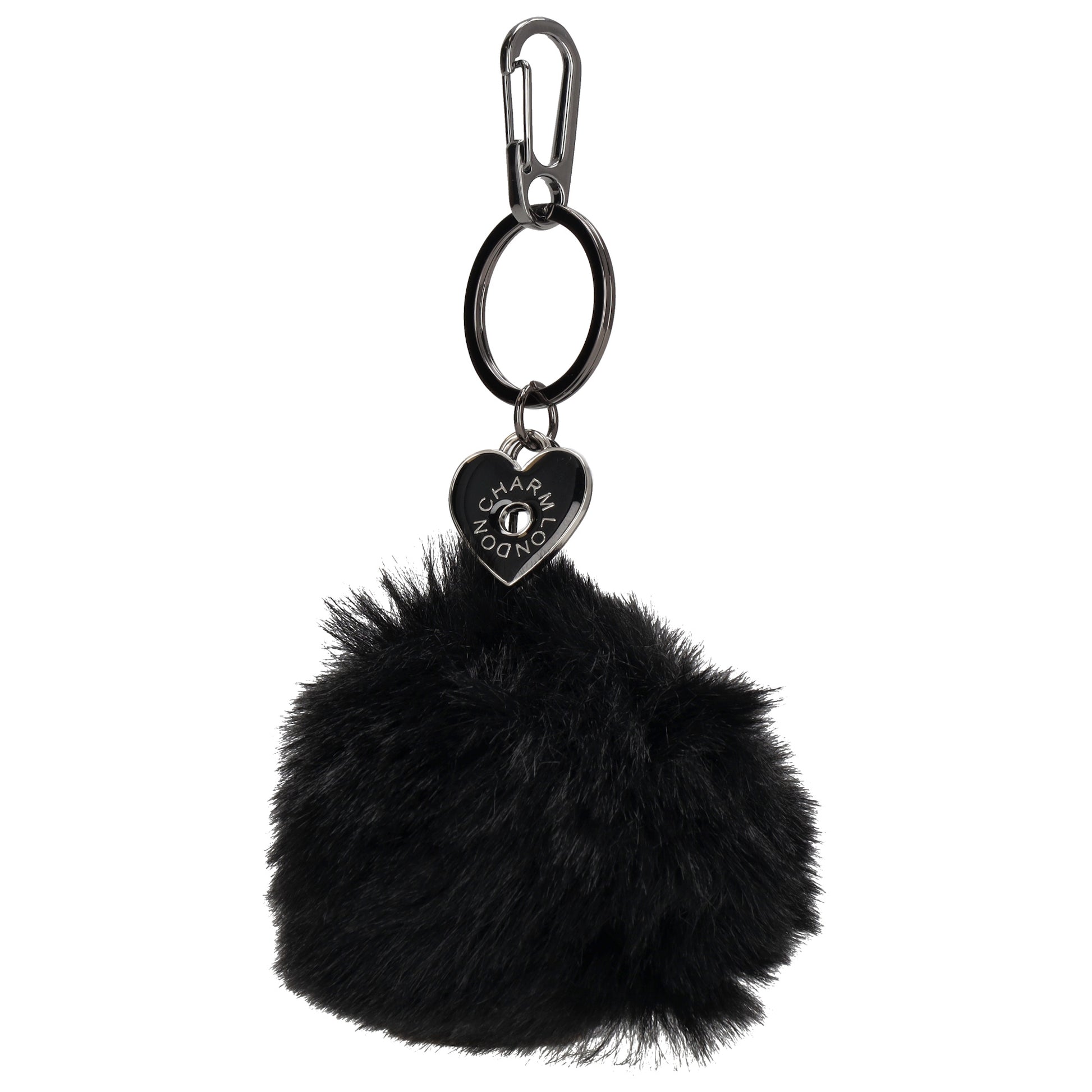 Pompon-Taschenanhänger in Schwarz mit Schlüsselring
