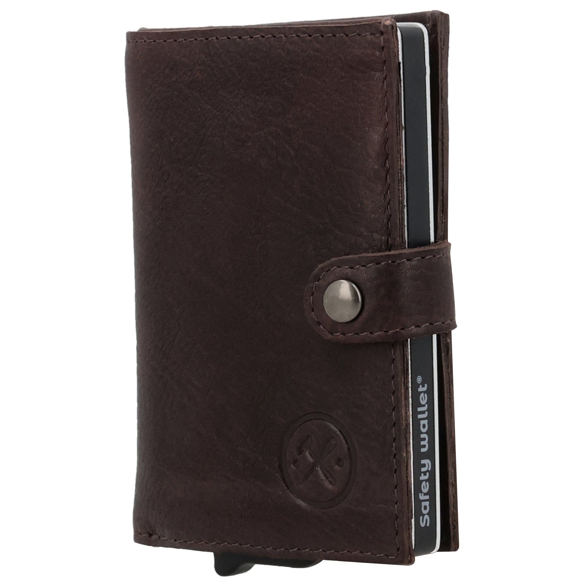 Safety Wallet 7,2x10cm Leder Dunkelbraun – Kompakte Geldbörse mit Kartenfächern