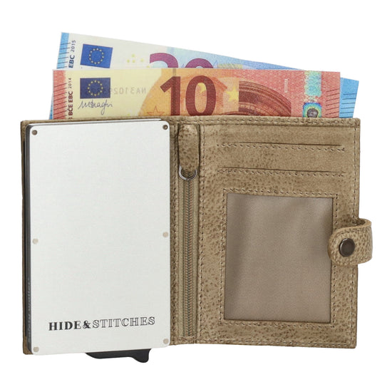 Safety Wallet 7,2x10cm Leder Sand – Schlanke Geldbörse mit Kartenhalter