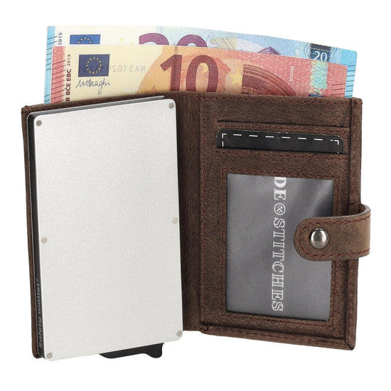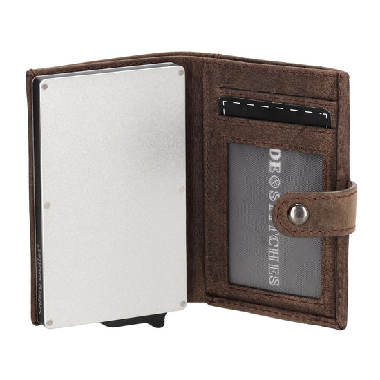 Safety Wallet 8x10cm Dunkelbraun mit RFID Schutz Leder