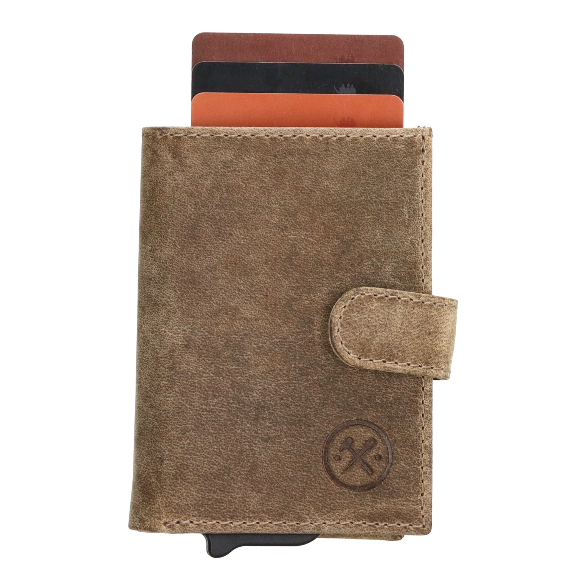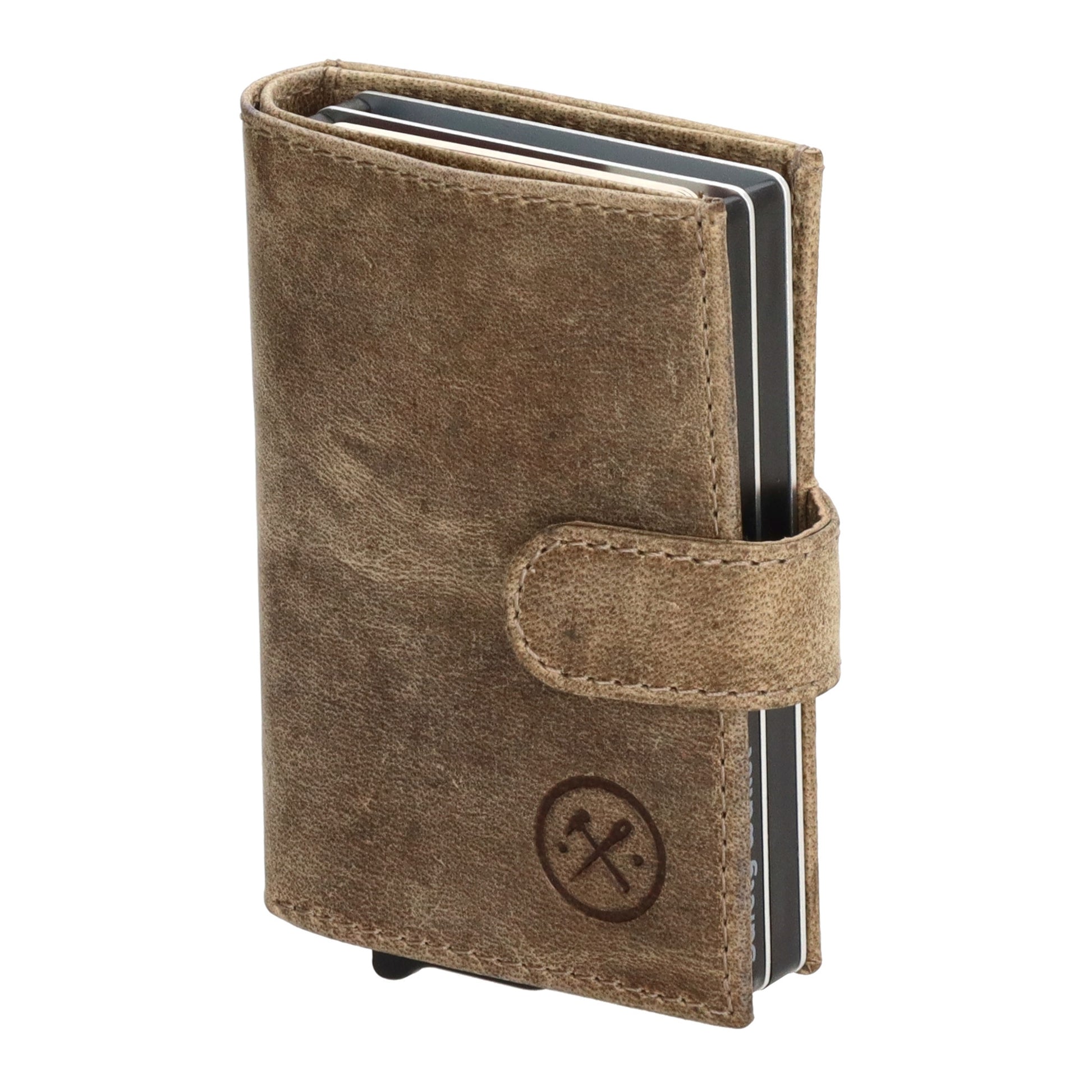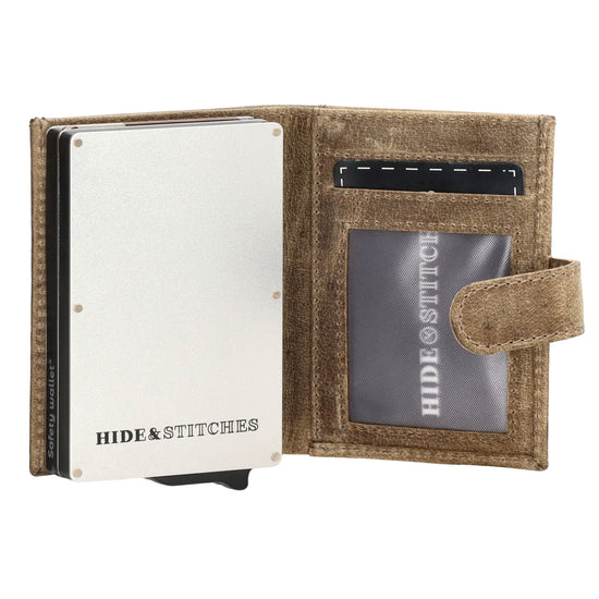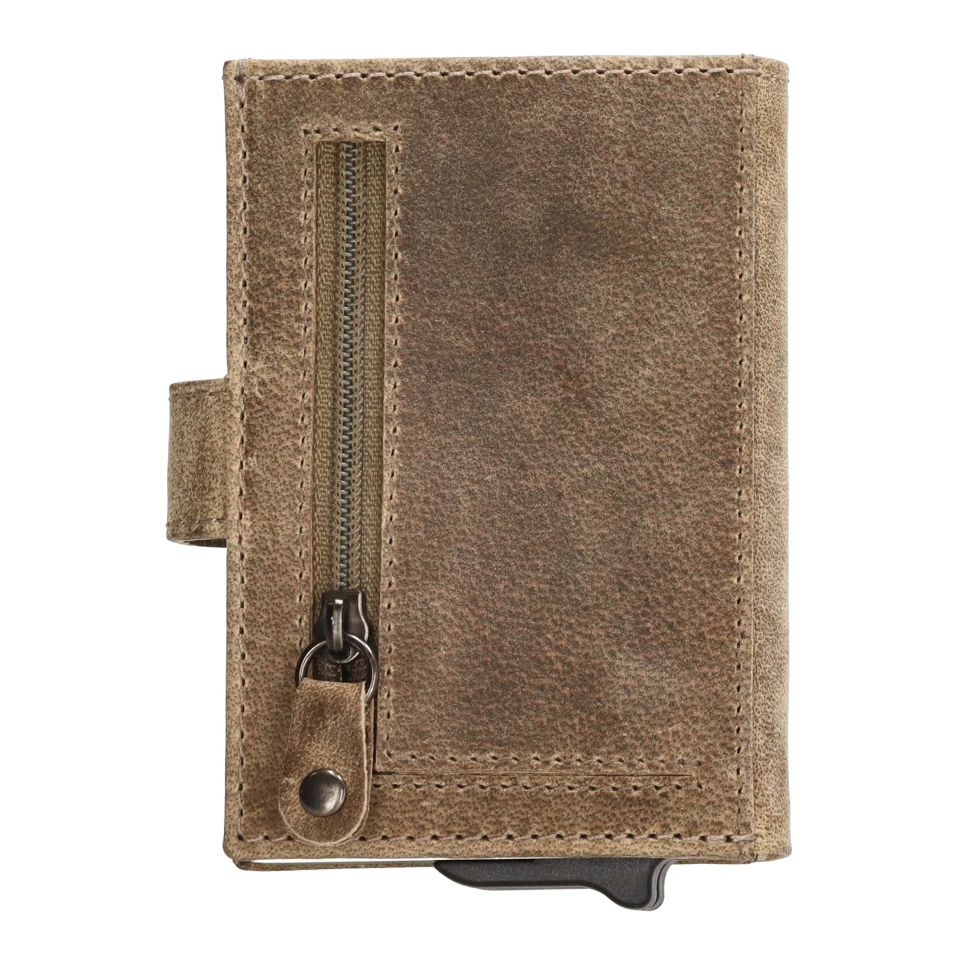 Sandfarbenes Safety Wallet 8,3x10,5cm aus Leder – klein, praktisch & vintage
