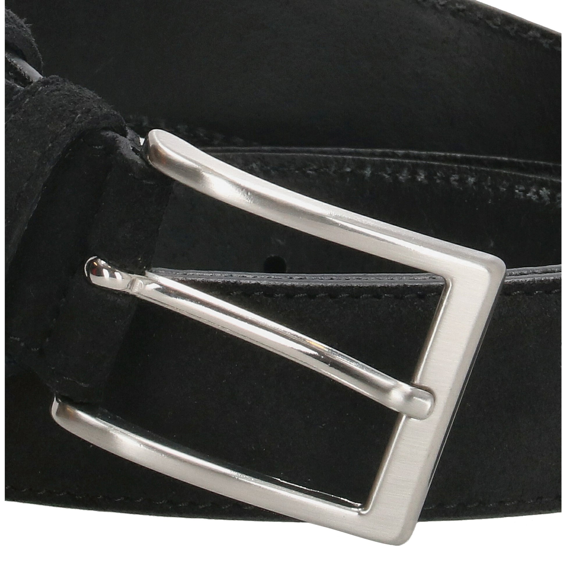 Der schwarze Veloursledergürtel ist ein zeitloser Klassiker für formelle Outfits. Das hochwertige Wildleder sorgt für eine elegante, matte Oberfläche. Die klare Linienführung und die eckige Silberschließe machen ihn zum perfekten Business-Gürtel. Dank Schraubsystem lässt sich die Länge individuell anpassen.