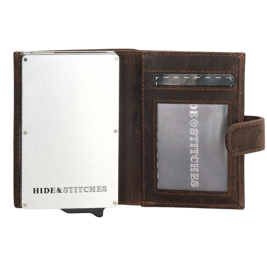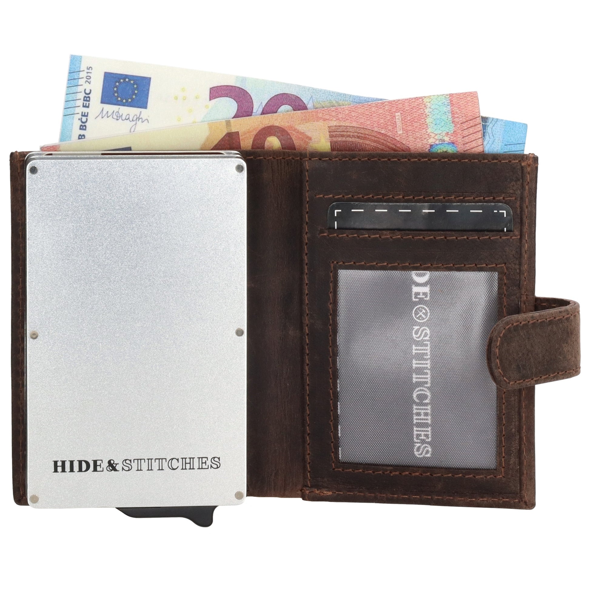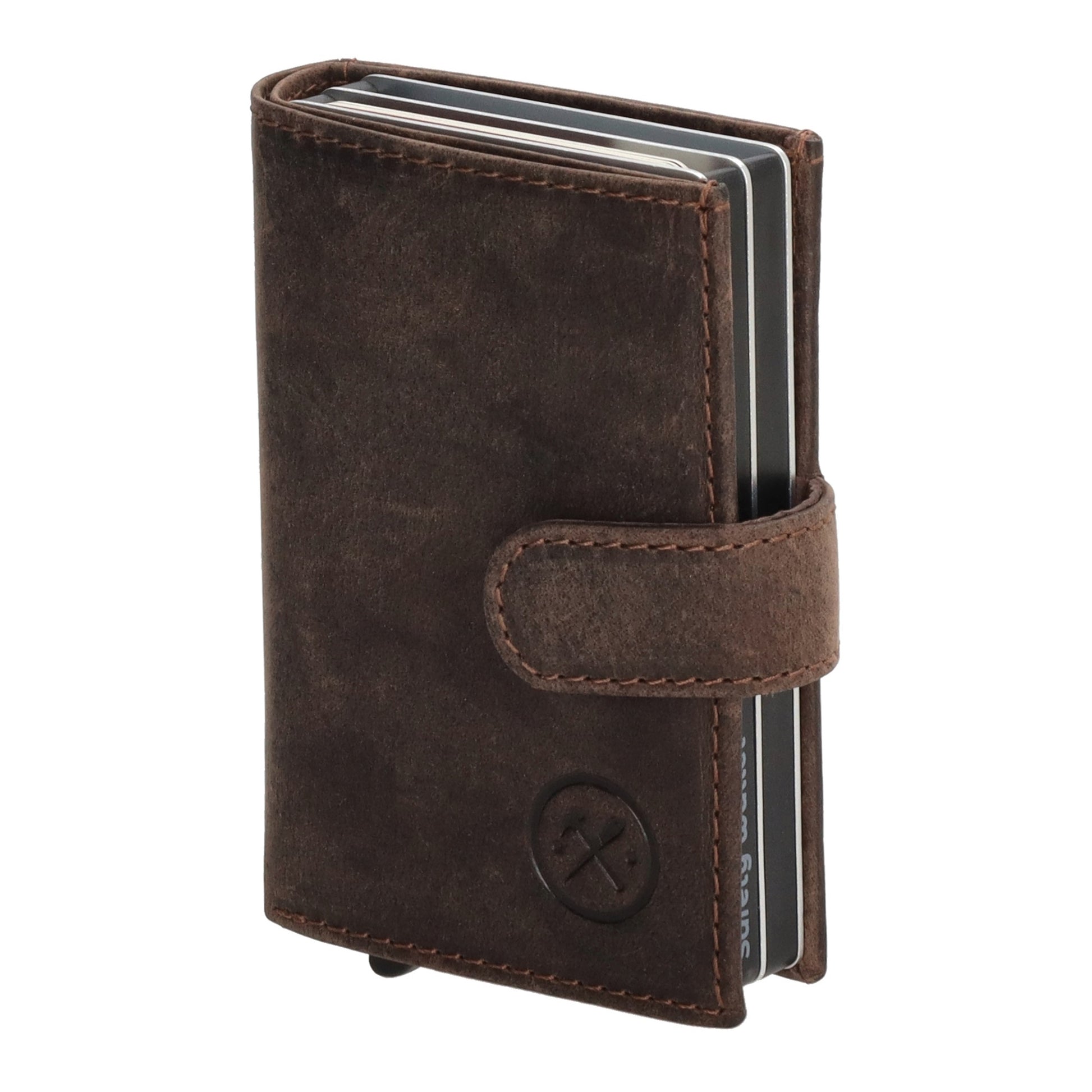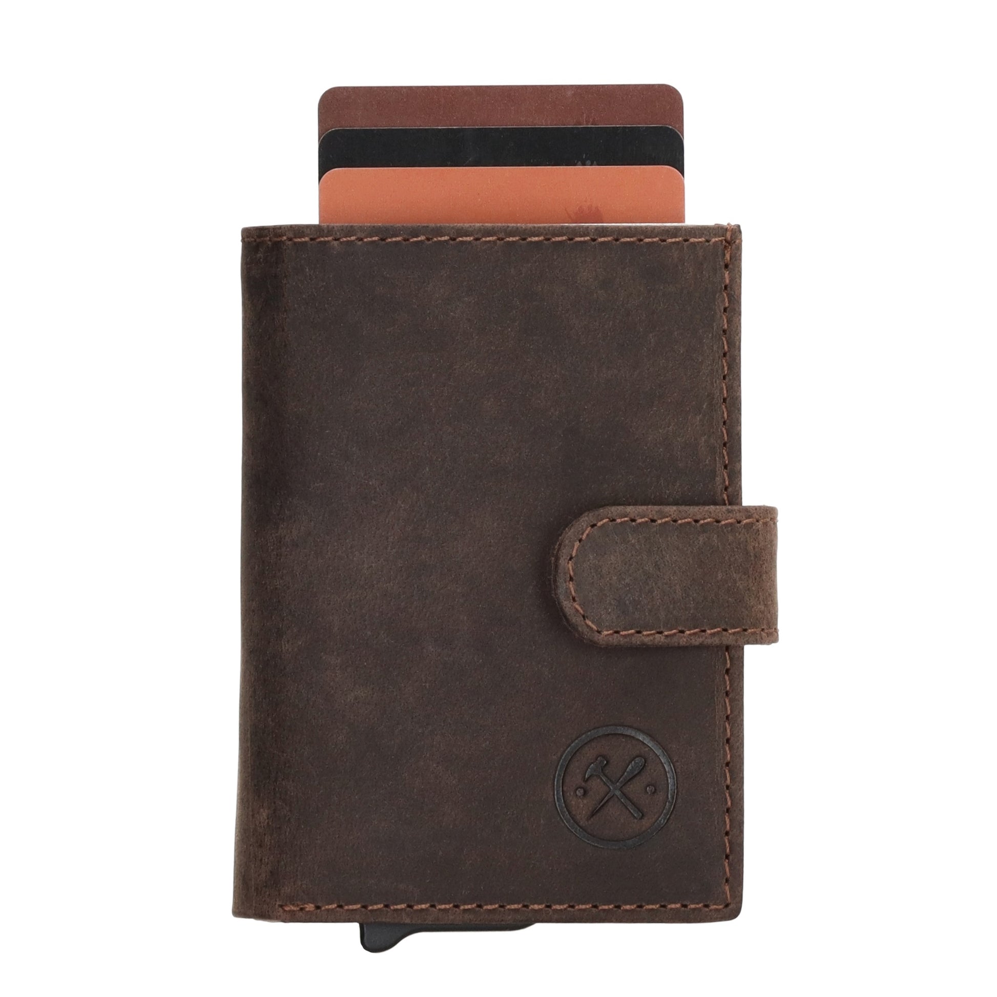 Dunkelbraune Leder Safety Wallet 8,3x10,5cm im Vintage-Look für Karten