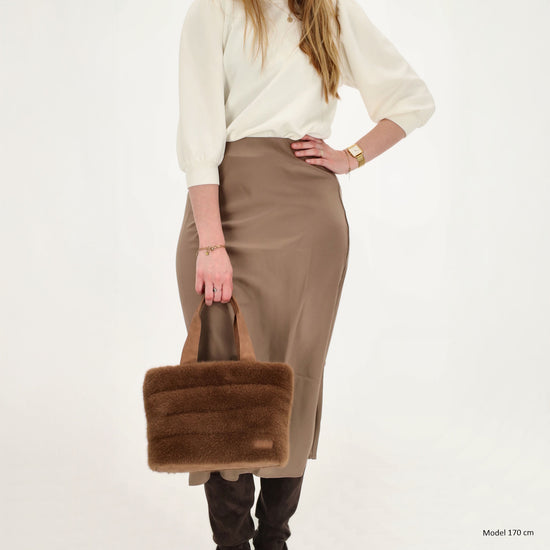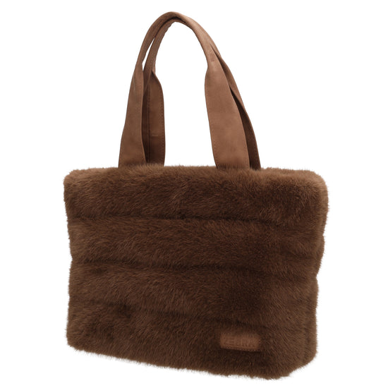 Shopper 30x21cm Braun aus Kunstfell mit Reißveschluss