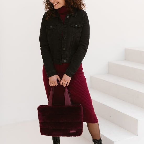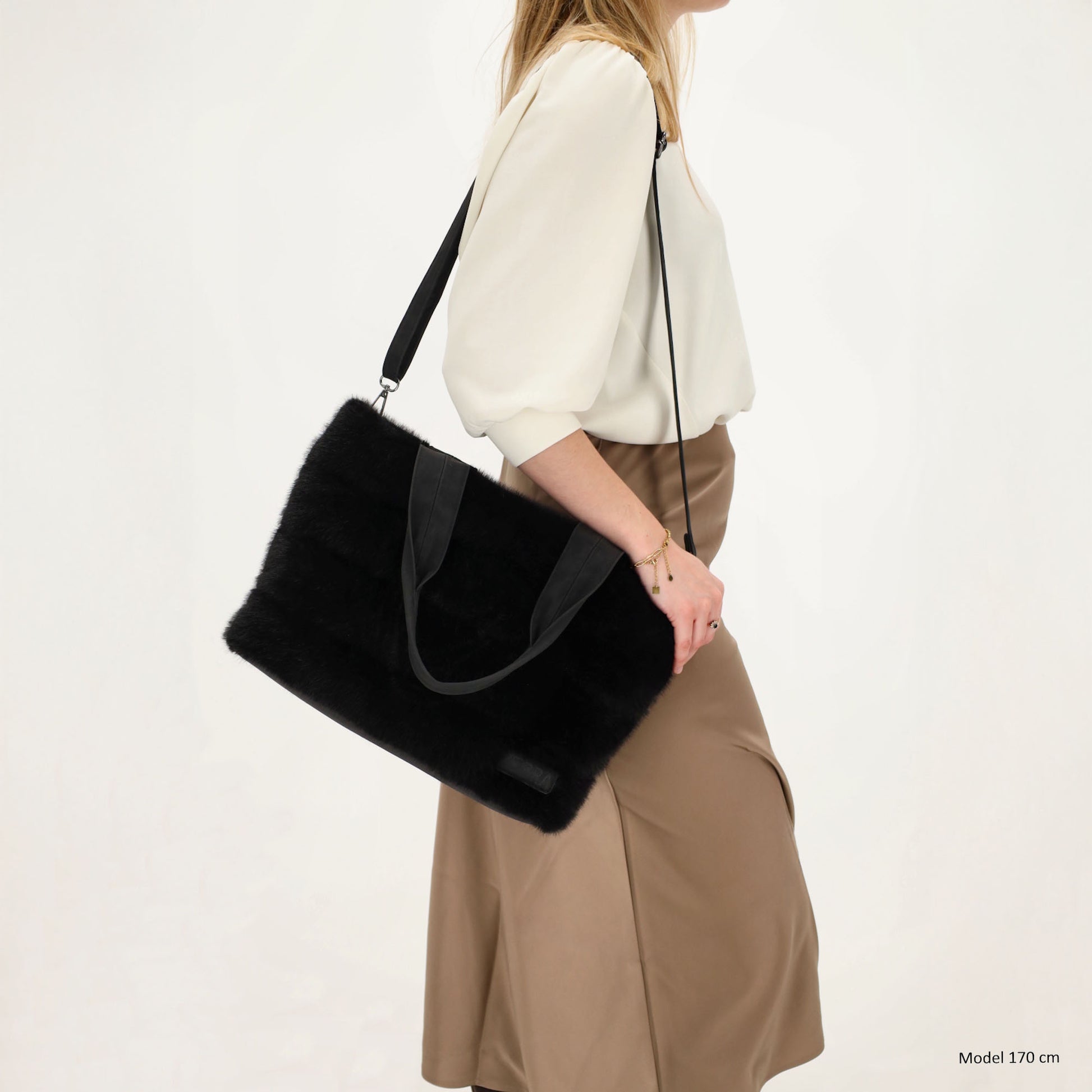 Ob im Büro, beim Stadtbummel oder unterwegs – mit diesem schwarzen Shopper in Felloptik hast du einen stylischen und funktionalen Begleiter an deiner Seite.