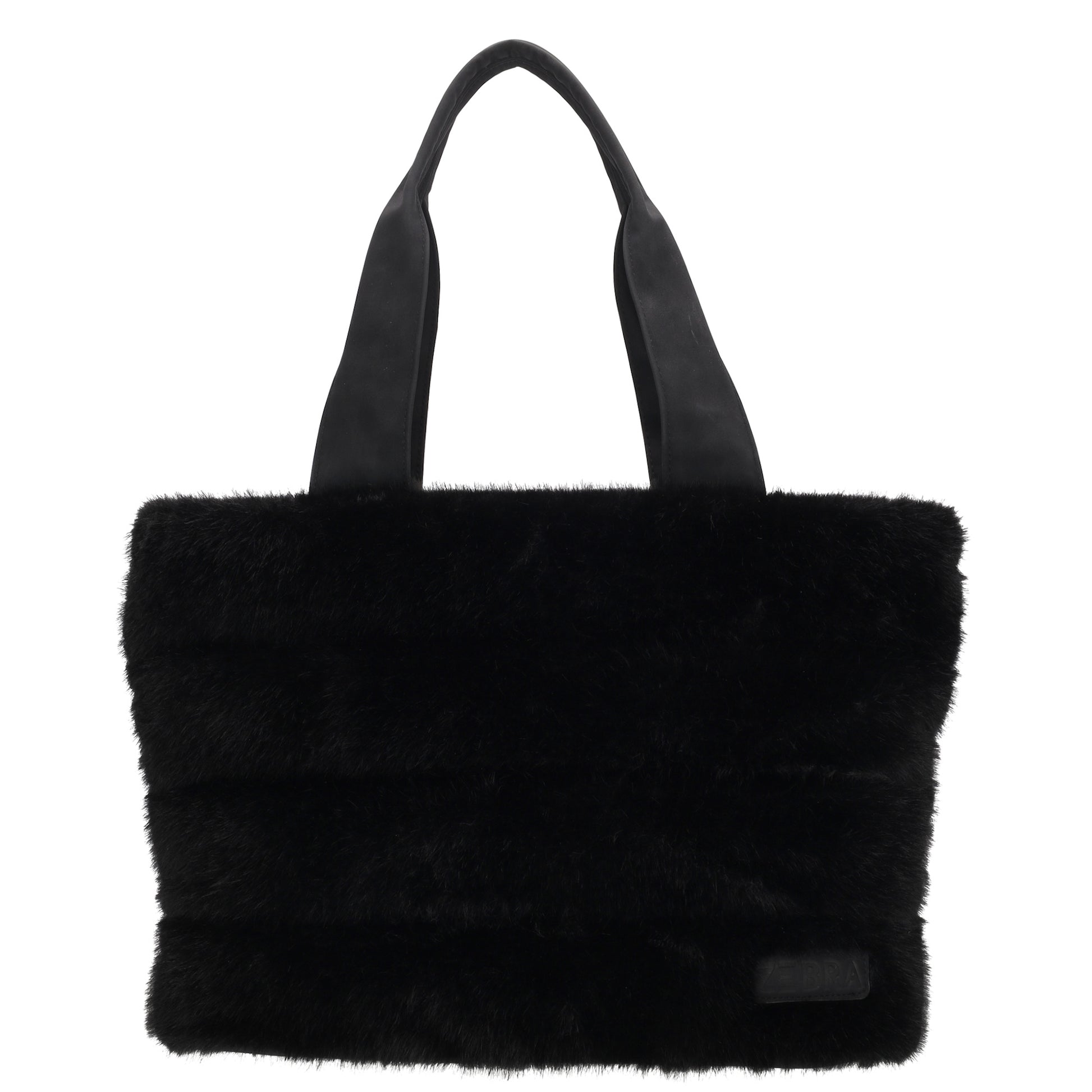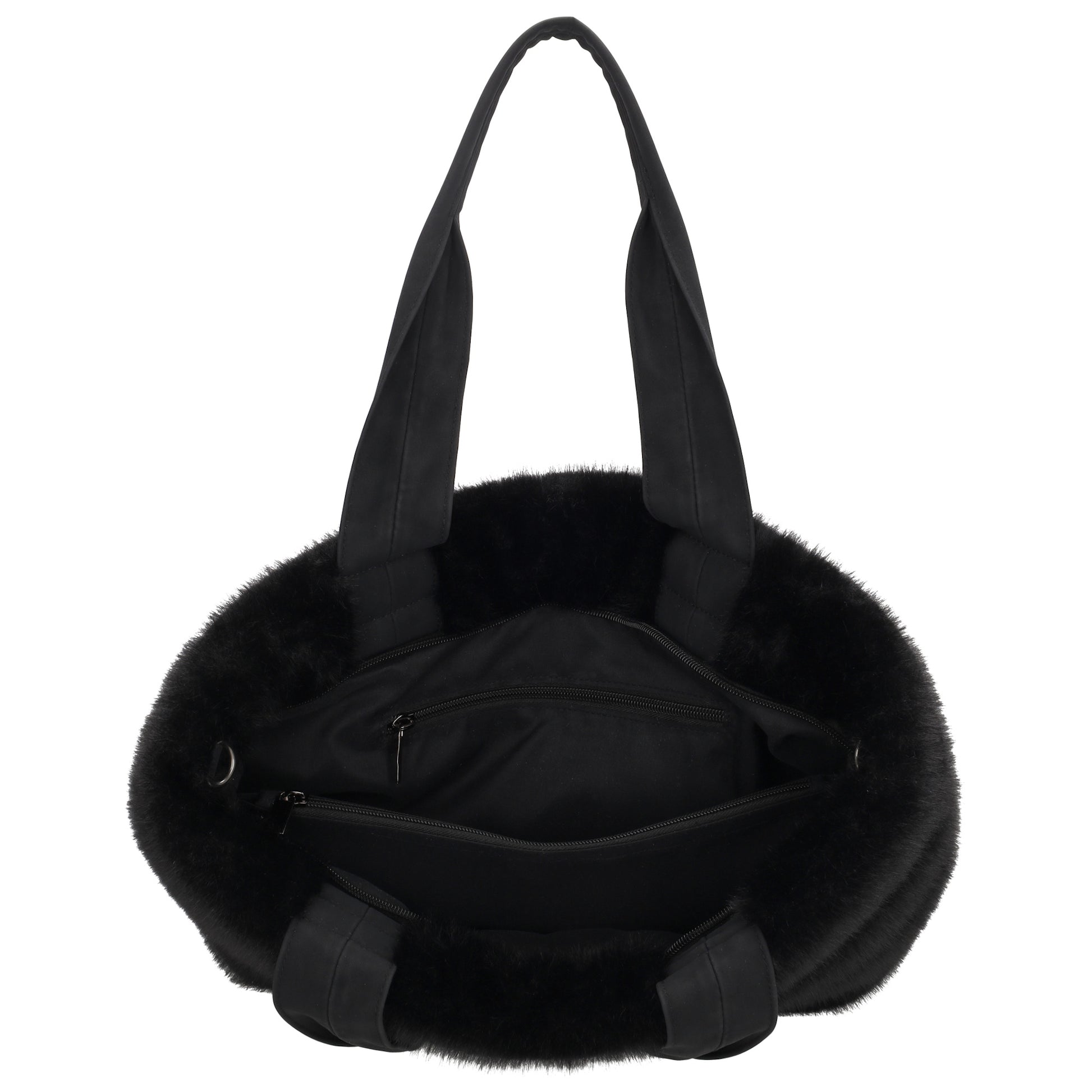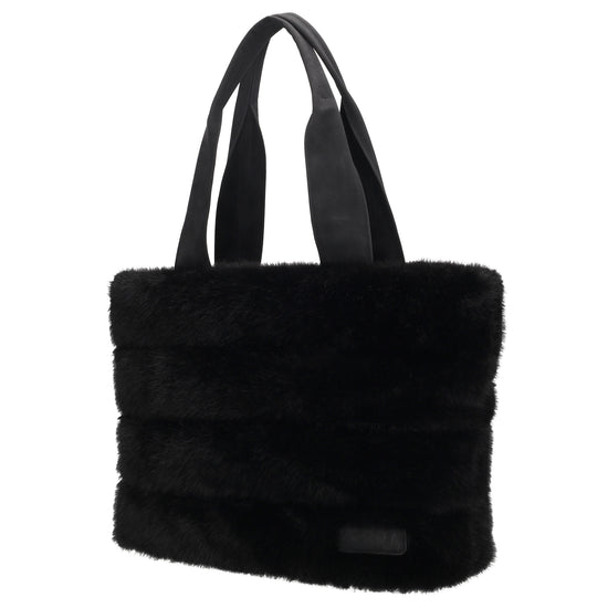 Shopper 41x28cm Schwarz in Fell-Optik mit Reißveschluss
