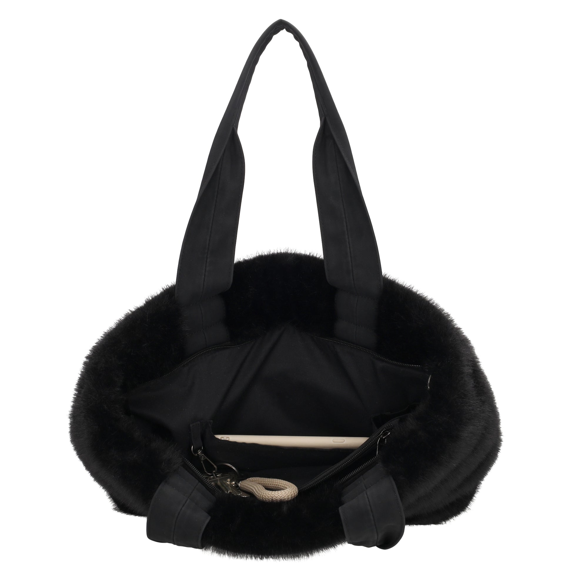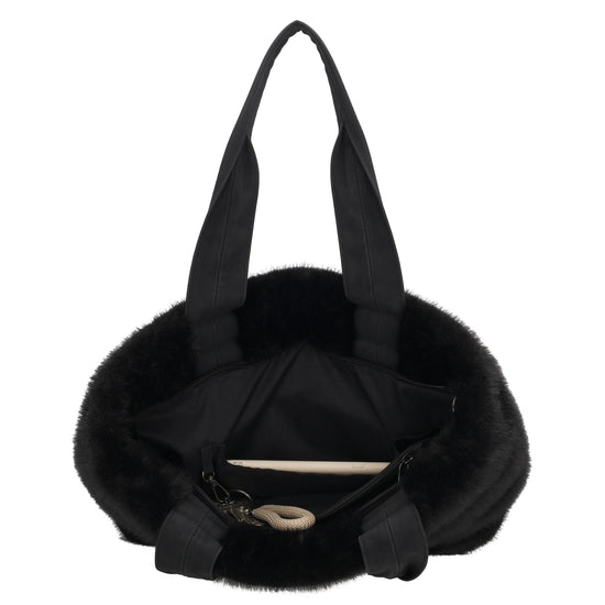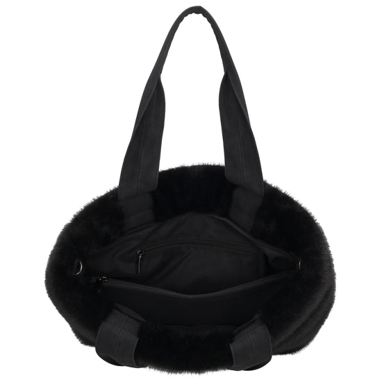 Dieser elegante Shopper in Schwarz mit weicher Fell-Optik ist die perfekte Kombination aus modischem Design und praktischer Funktionalität. Dank der kuscheligen Kunstfell-Oberfläche wirkt die Tasche warm, edel und modern – ideal für den Herbst und Winter oder als stilvoller Alltagsbegleiter.