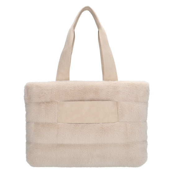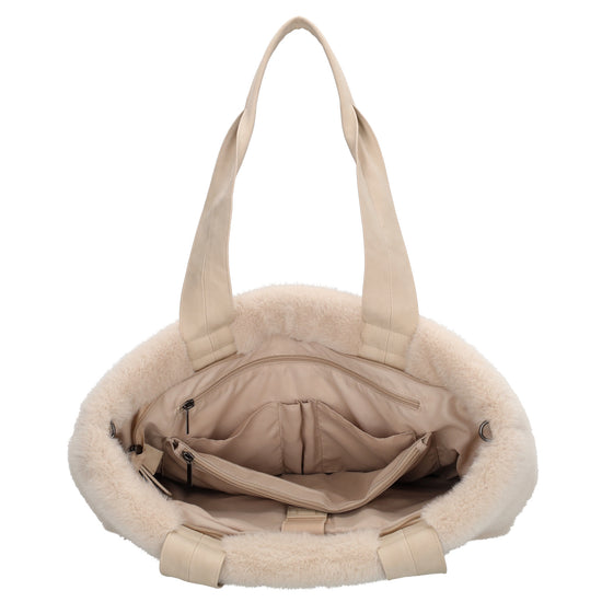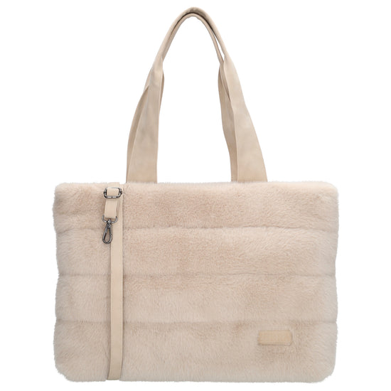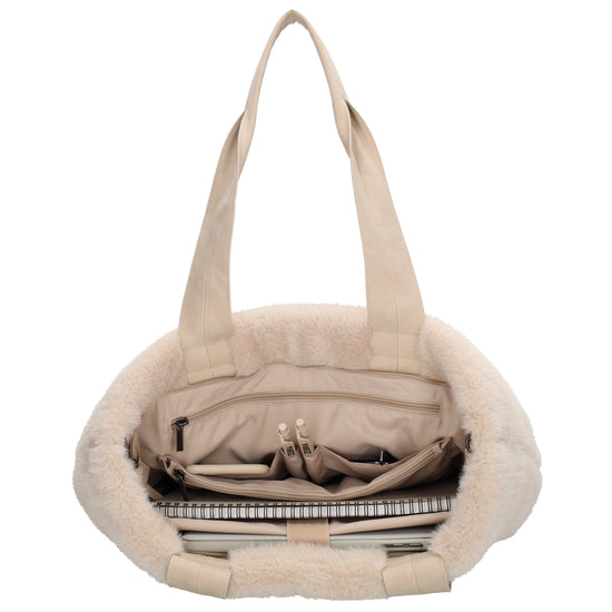 Ob fürs Office, die Uni oder unterwegs – dieser cremefarbene Shopper aus Kunstfell überzeugt durch seine stilvolle Optik, smarte Aufteilung und vielseitige Tragemöglichkeiten. Ein Must-have für die kalte Saison mit Extra-Komfort für Vielbeschäftigte.