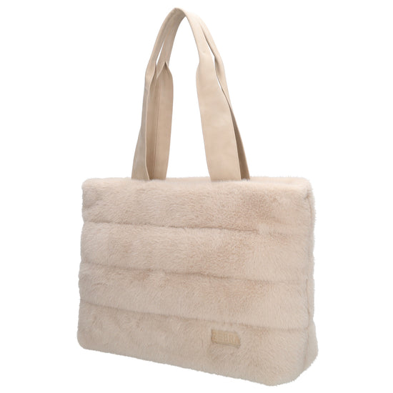 Shopper XL 47x32cm Creme aus Kunstfell mit Reißveschluss