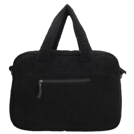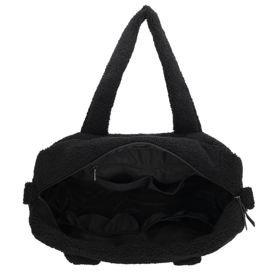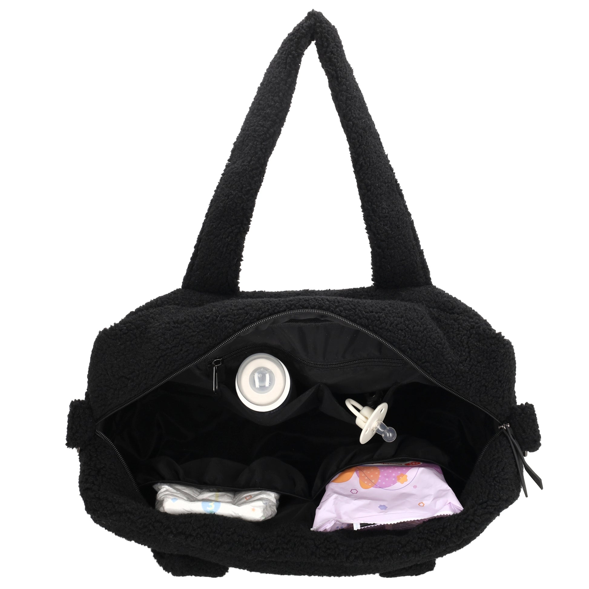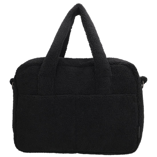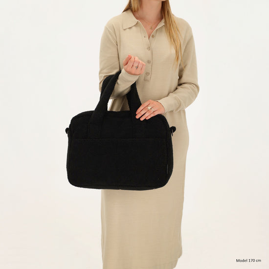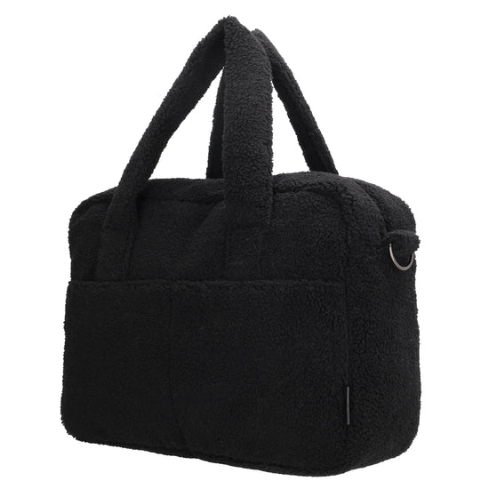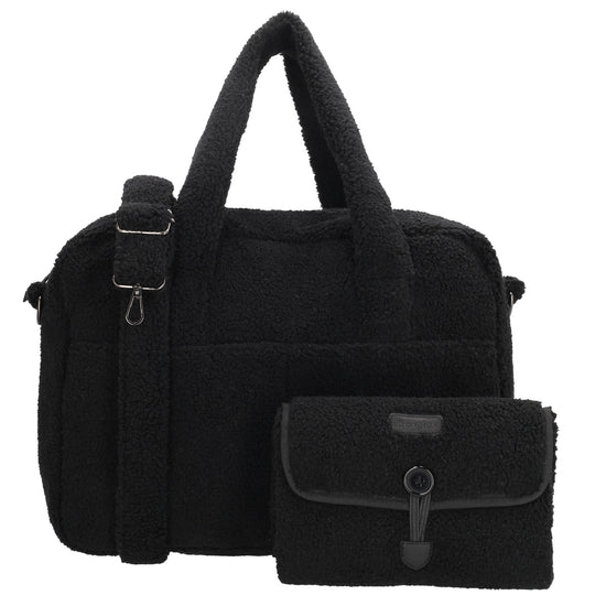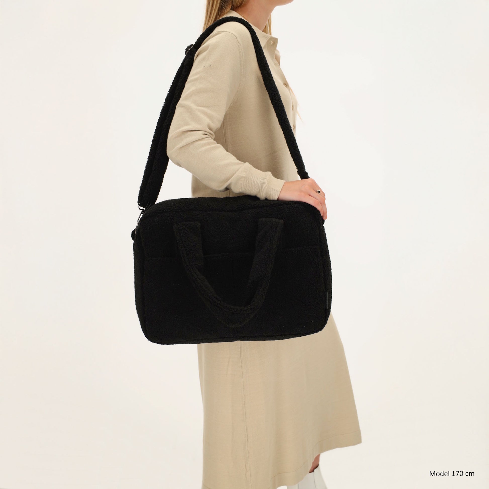 Die schwarze Teddy-Wickeltasche verbindet modernes Design mit praktischer Alltagstauglichkeit – perfekt für Eltern, die Funktion und Stil gleichermaßen schätzen. Das weiche Teddy-Material verleiht der Tasche eine edle, minimalistische Optik und sorgt gleichzeitig für ein angenehmes Tragegefühl.
