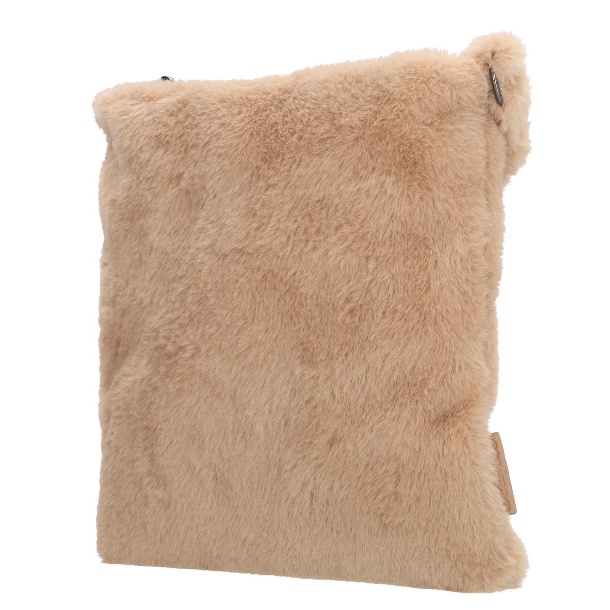 Umhängetasche 24x25cm Beige aus Kunstfell mit Reißveschluss