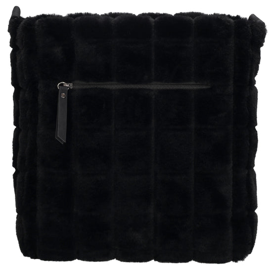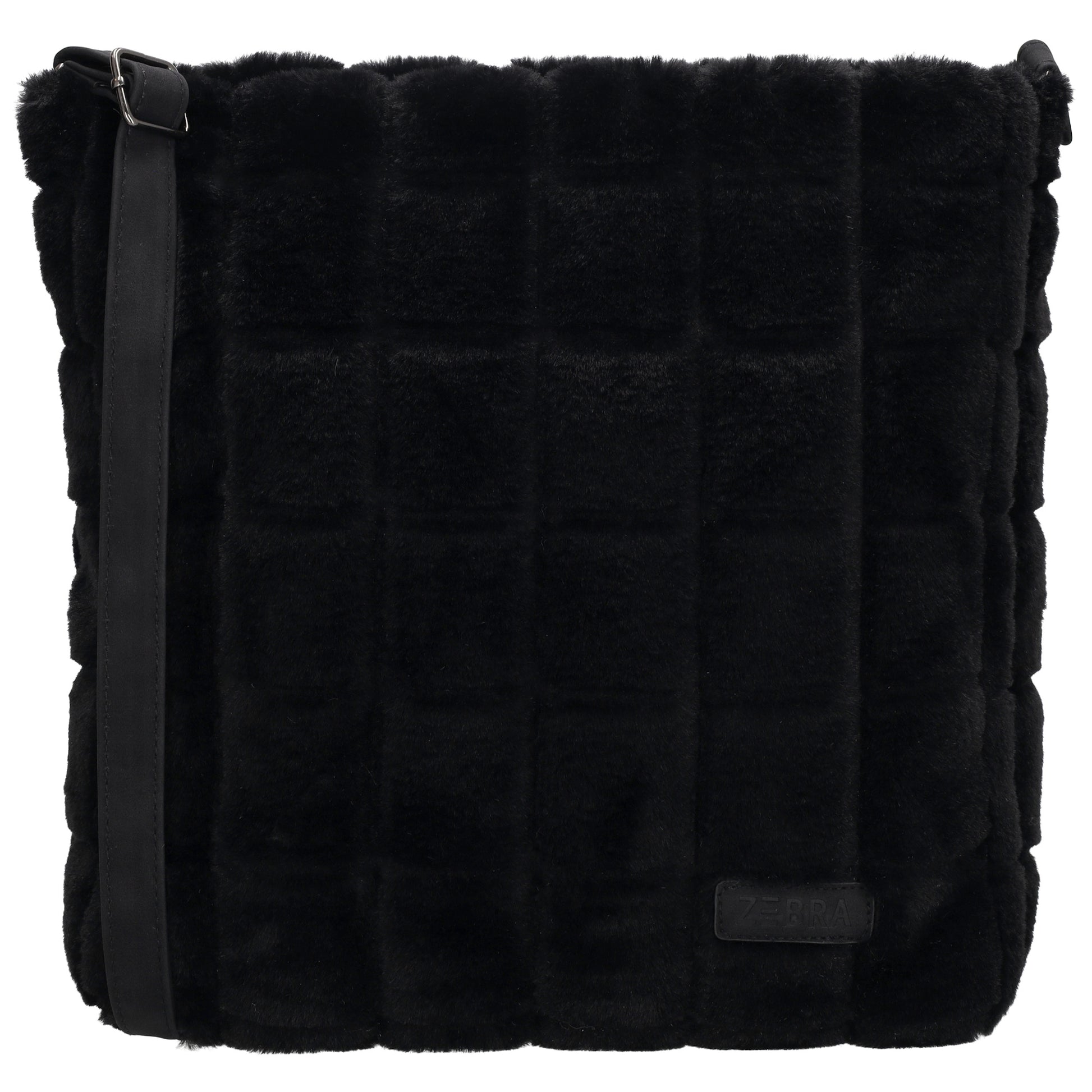 Umhängetasche 26x28,5cm Schwarz in Fell-Optik mit Reißveschluss