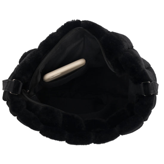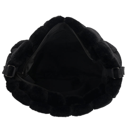 Mit dieser schwarzen Umhängetasche in Felloptik setzt du ein stylisches Statement – ob im Alltag, in der Freizeit oder unterwegs. Praktisch, weich und absolut im Trend!
