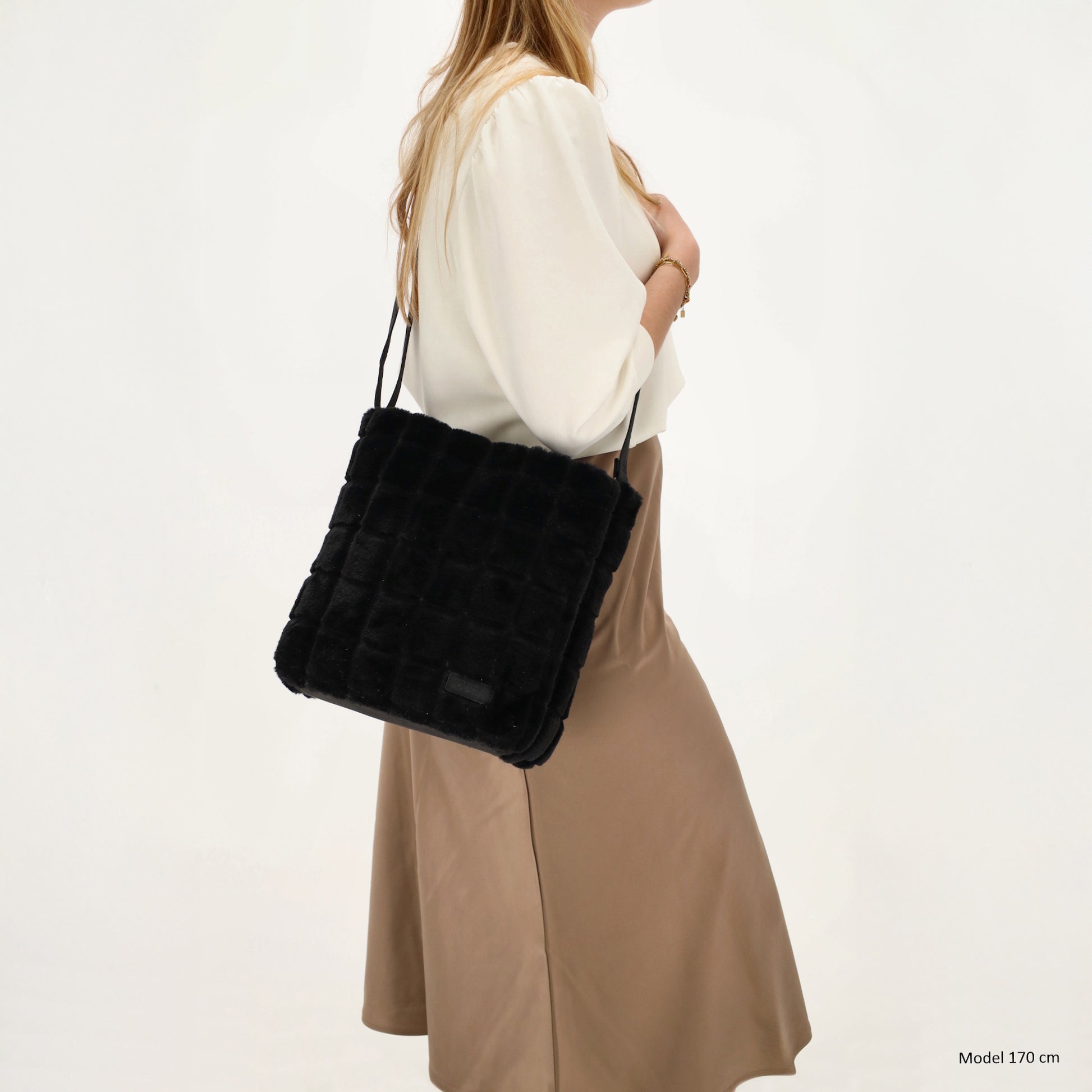 Das weiche Material in auffälliger Felloptik verleiht der Tasche einen eleganten und gleichzeitig gemütlichen Look. Durch den verstellbaren Schulterriemen kann sie bequem als Crossover oder klassisch über der Schulter getragen werden – flexibel anpassbar auf jede Körpergröße und Tragesituation.
