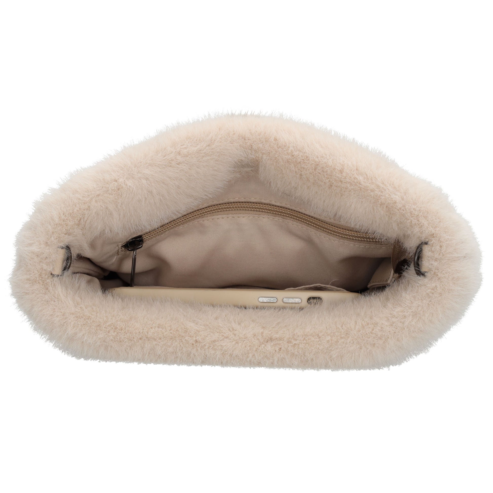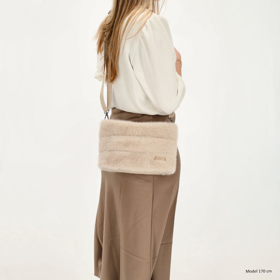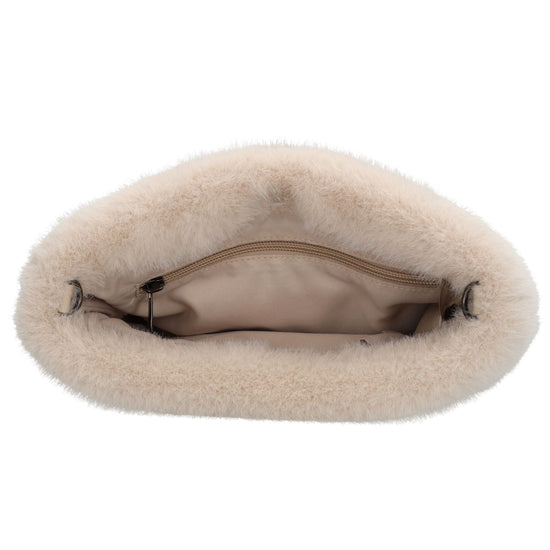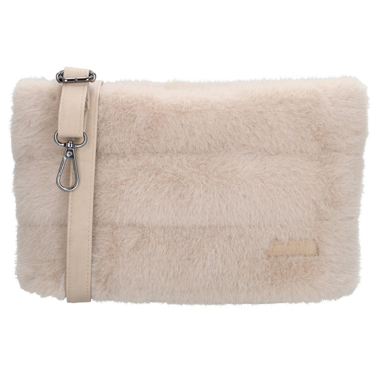 Umhängetasche 27x17cm Beige aus Kunstfell mit Reißveschluss