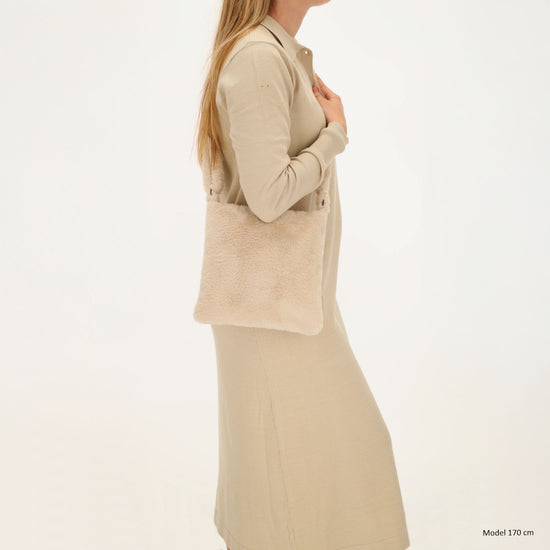 Umhängetasche 24x25cm Creme aus Kunstfell mit Reißveschluss