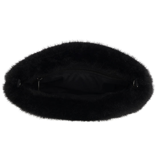Umhängetasche 27x17cm Schwarz aus Kunstfell mit Reißveschluss