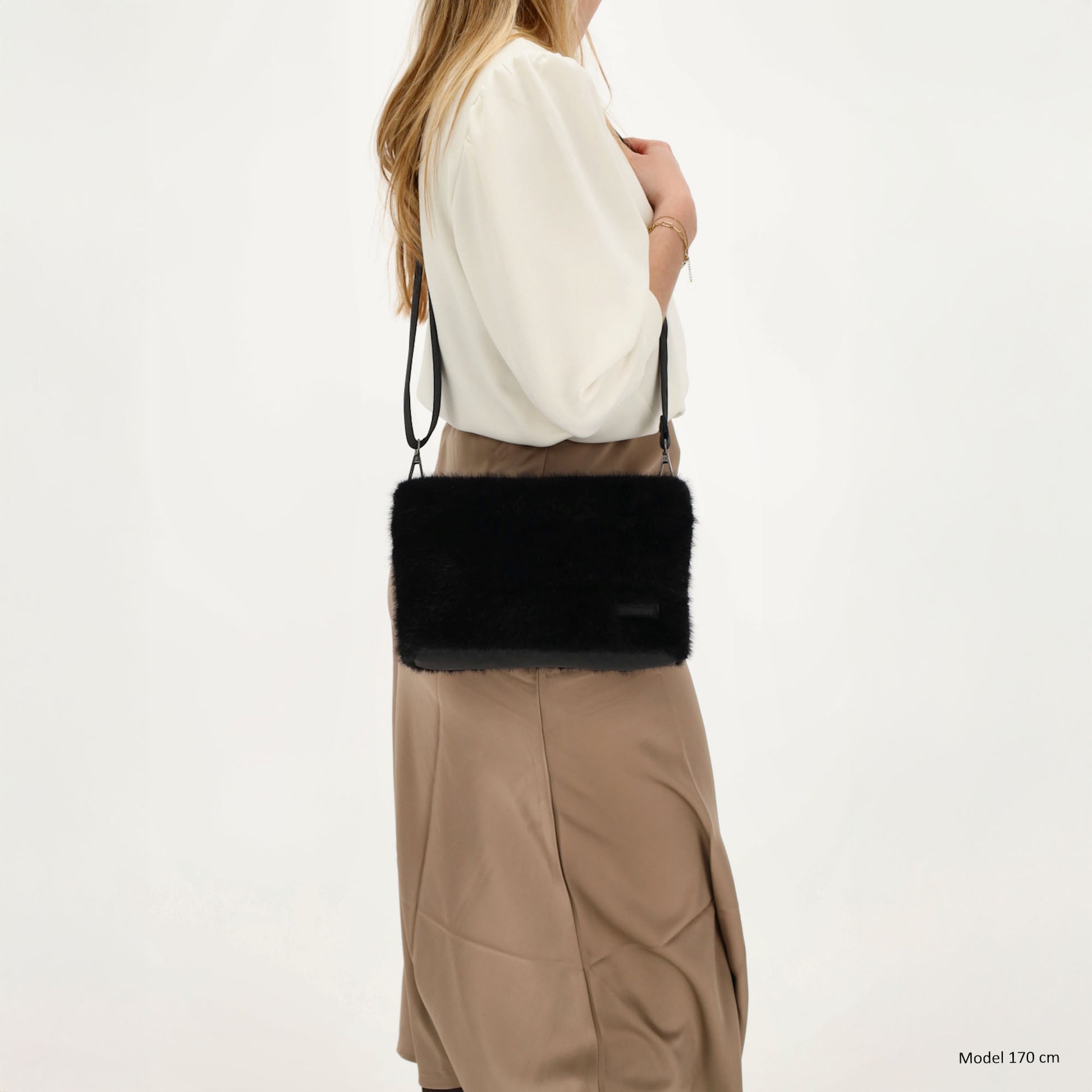 Das hochwertige Kunstfell sorgt für eine weiche Haptik und edle Optik, während das funktionale Innenleben überzeugt: Ein Reißverschlussfach und ein praktisches Handyfach im Inneren helfen dir, deine Essentials wie Smartphone, Schlüssel oder Lippenpflege übersichtlich zu verstauen.