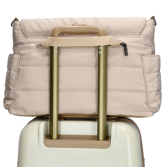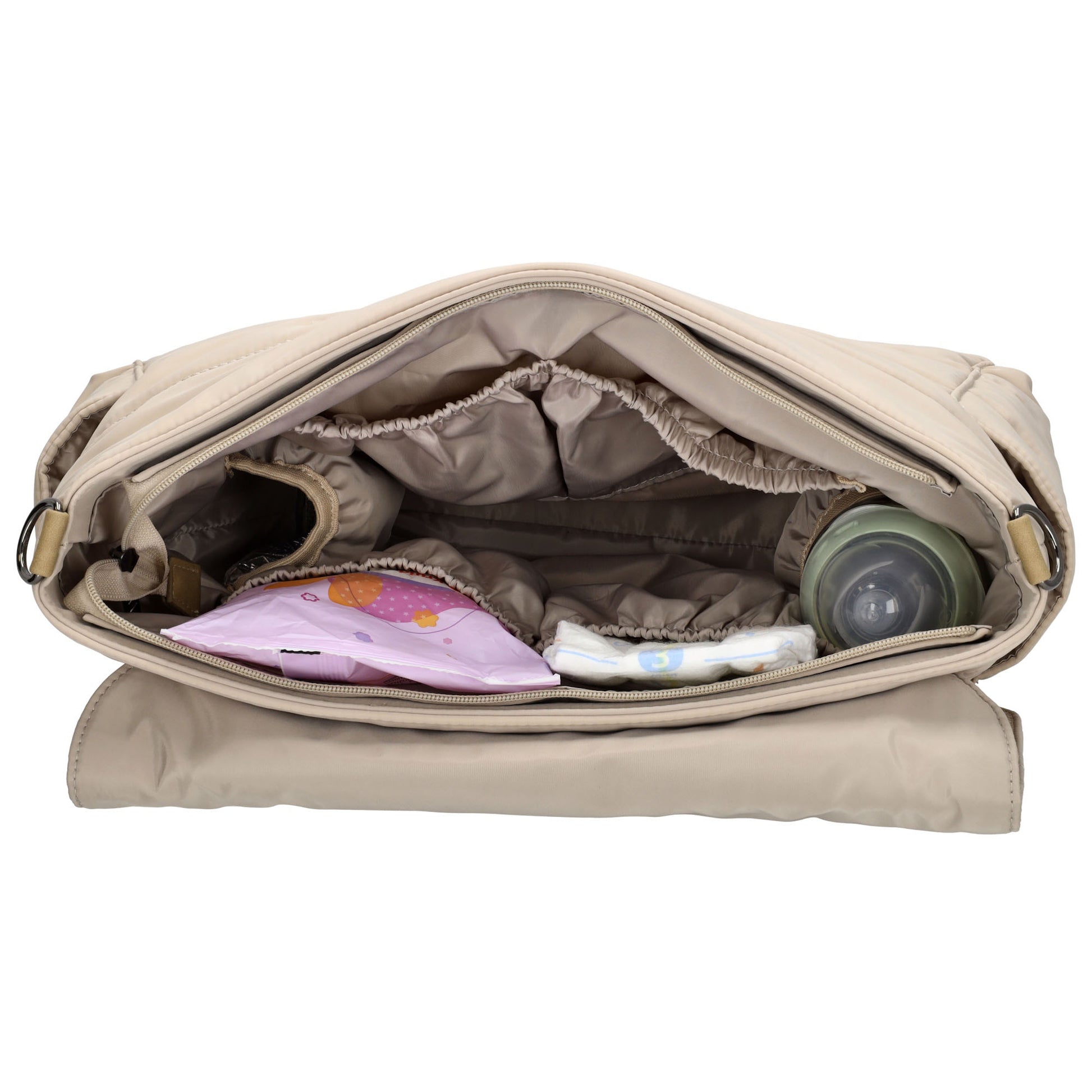 Die Wickeltasche in modernem Helltaupe vereint stilvolles Design mit durchdachter Funktionalität – ideal für Eltern, die viel unterwegs sind und alles griffbereit haben möchten.