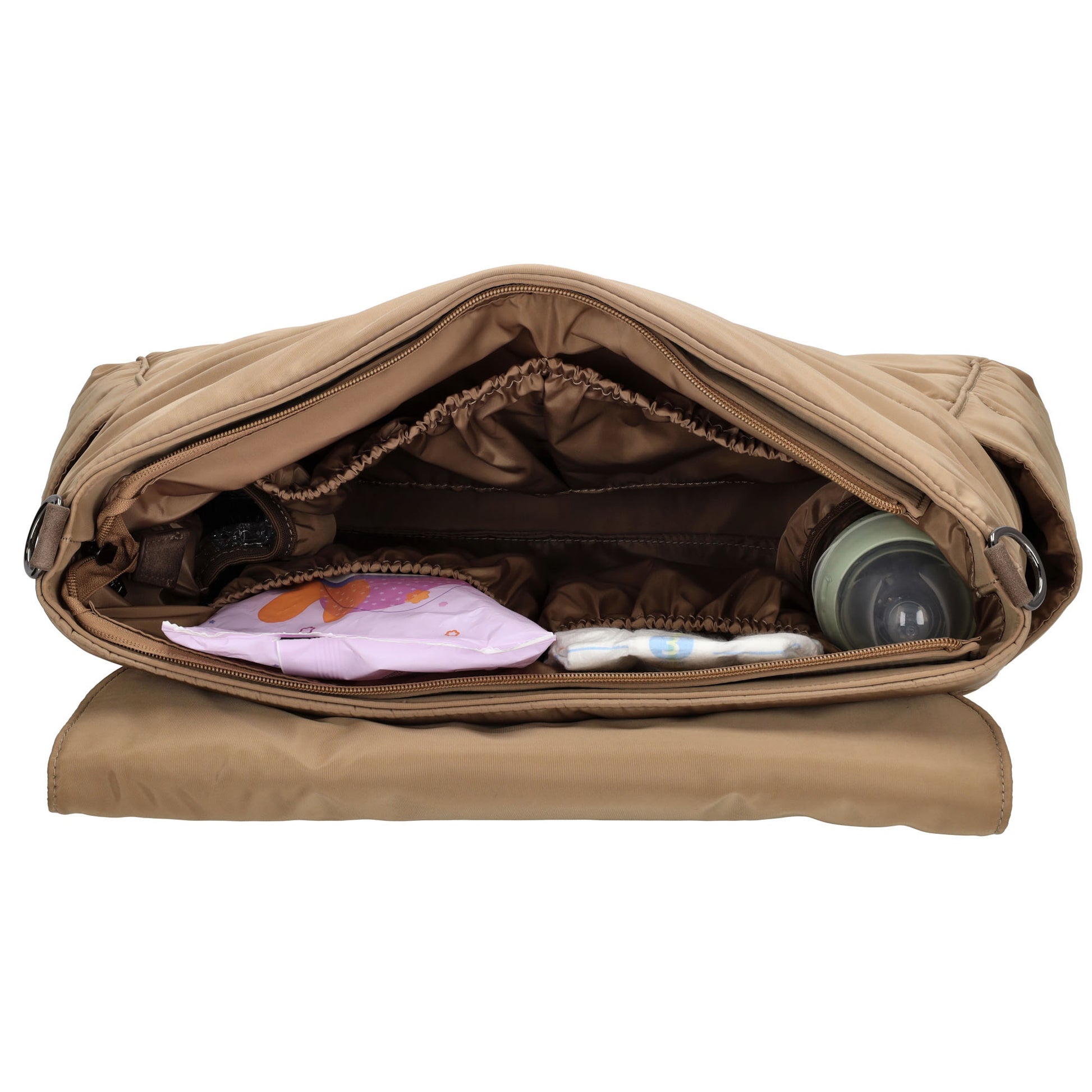 Durchdachte Innenaufteilung: Mehrere Fächer für Windeln, Feuchttücher, Snacks und mehr.