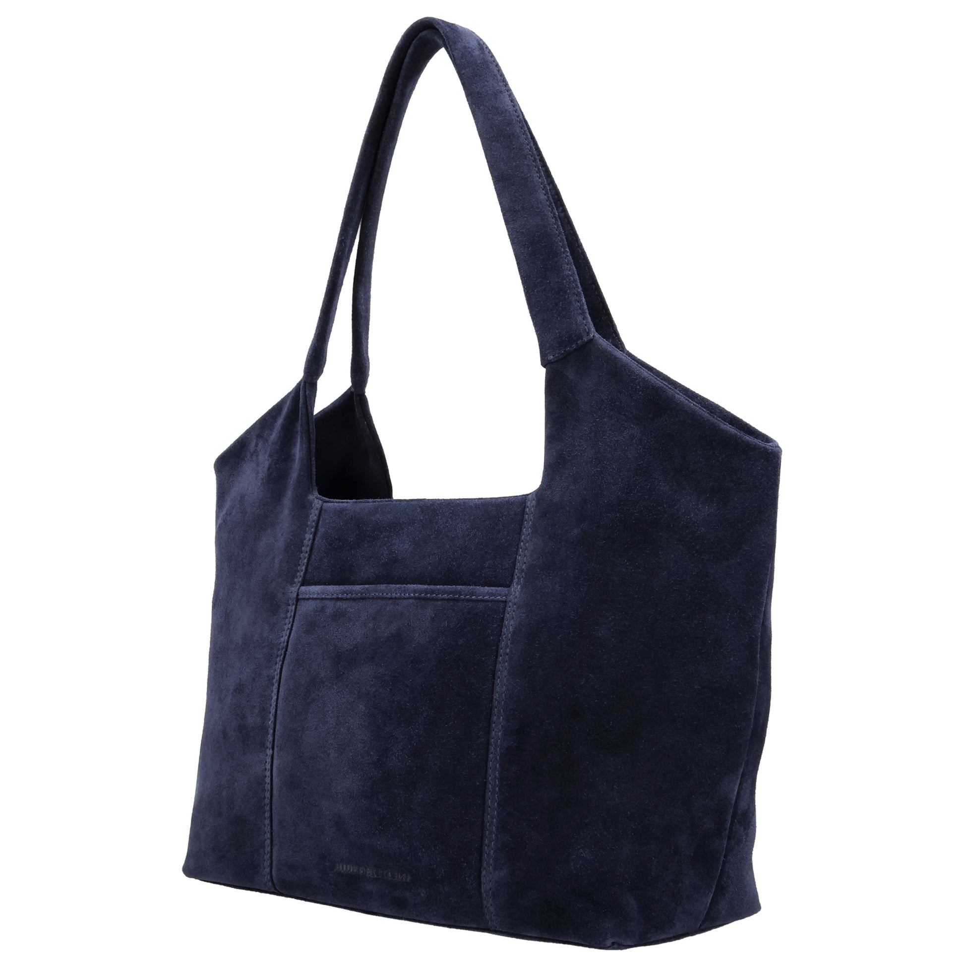 Die Wildleder-Schultertasche in klassischem Blau verbindet stilvolle Eleganz mit funktionalem Design. Das weiche, hochwertige Wildleder sorgt für eine edle Optik, die sich perfekt mit urbanen und geschäftlichen Outfits kombinieren lässt. Durch das geräumige Hauptfach mit Reißverschluss bleiben persönliche Gegenstände sicher verstaut. Innen bieten ein Handyfach, ein zusätzliches Steckfach sowie ein Reißverschlussfach eine übersichtliche Organisation.